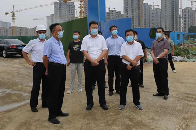 8月10日,市委常委、政法委書記劉慶東,市委政法委分管日常工作的副書記朱瑞國,市社會治理綜合服務中心主任謝凱一行來小崗區域改造項目督導疫情防控和生態環境保護工作。北辛街道黨工委書記馬金安,集團董事長方玉新參加活動。劉慶東詳細察看了項目疫情防護措施及建筑工地揚塵治理等工作情況,并對相關工作給予充分肯定和高